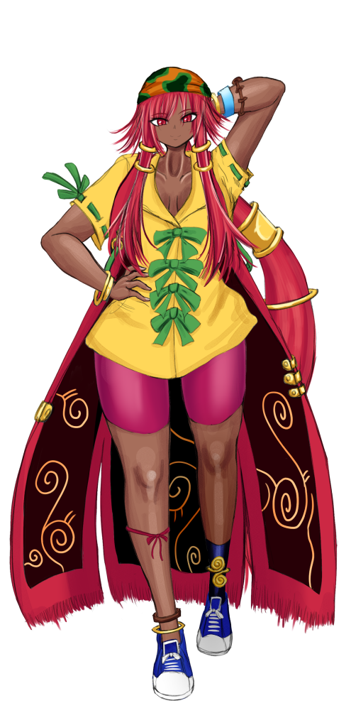 赤い髪にアルカードとは思えない日焼けした肌色の女性。