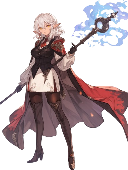 | 境遇 | 偉大なる父を失ったラヴィニアは、その死後、多くの苦難を経験する。 父、“浄火の”ヒエロニムスは歴史に名を刻む大魔術士であり、火の精霊魔術を極めた賢人であった。 彼の名は伝説となり、娘にとってそれは誇りであると同時に、重すぎる呪縛でもあった。 周囲は彼女を「父の再来」「次代の浄火」と称えながらも、誰も“ラヴィニア自身”を見てはいなかった。 若きラヴィニアはその重圧を打ち砕くため、誰よりも学び、誰よりも研鑽を積んだ。 |