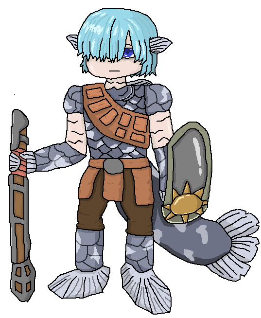 身長150cm前後の小柄なサハギン。しかしその外見は人間とサハギンの中間じみた格好であり、