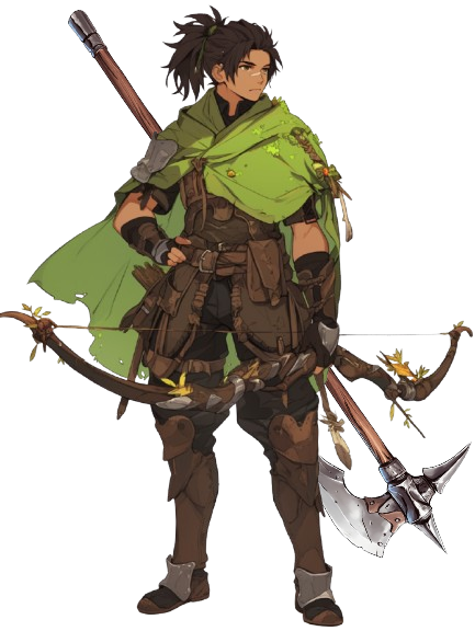 長柄武器と弓を扱う冒険者。浅黒く日焼けした肌の好青年だが、5年より前の記憶がないらしい。