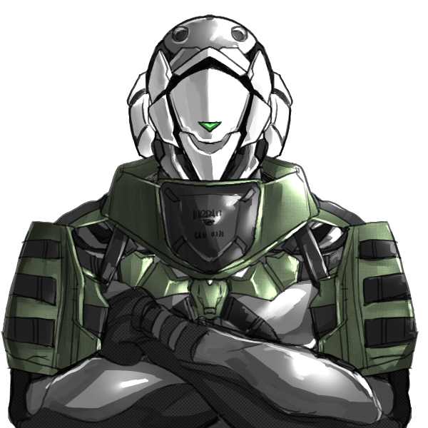 白いボディに深緑のアーマーを持つ男性型エクスマキナ。やや捻くれて軽薄な口調が特徴。