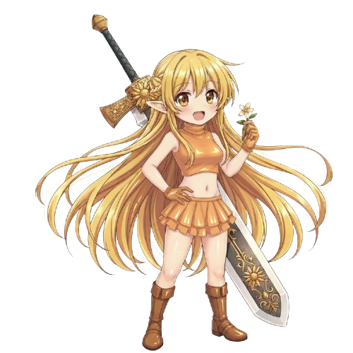 武器は身の丈以上もある大きな両手剣で、花の装飾をあしらった装備をしている。
