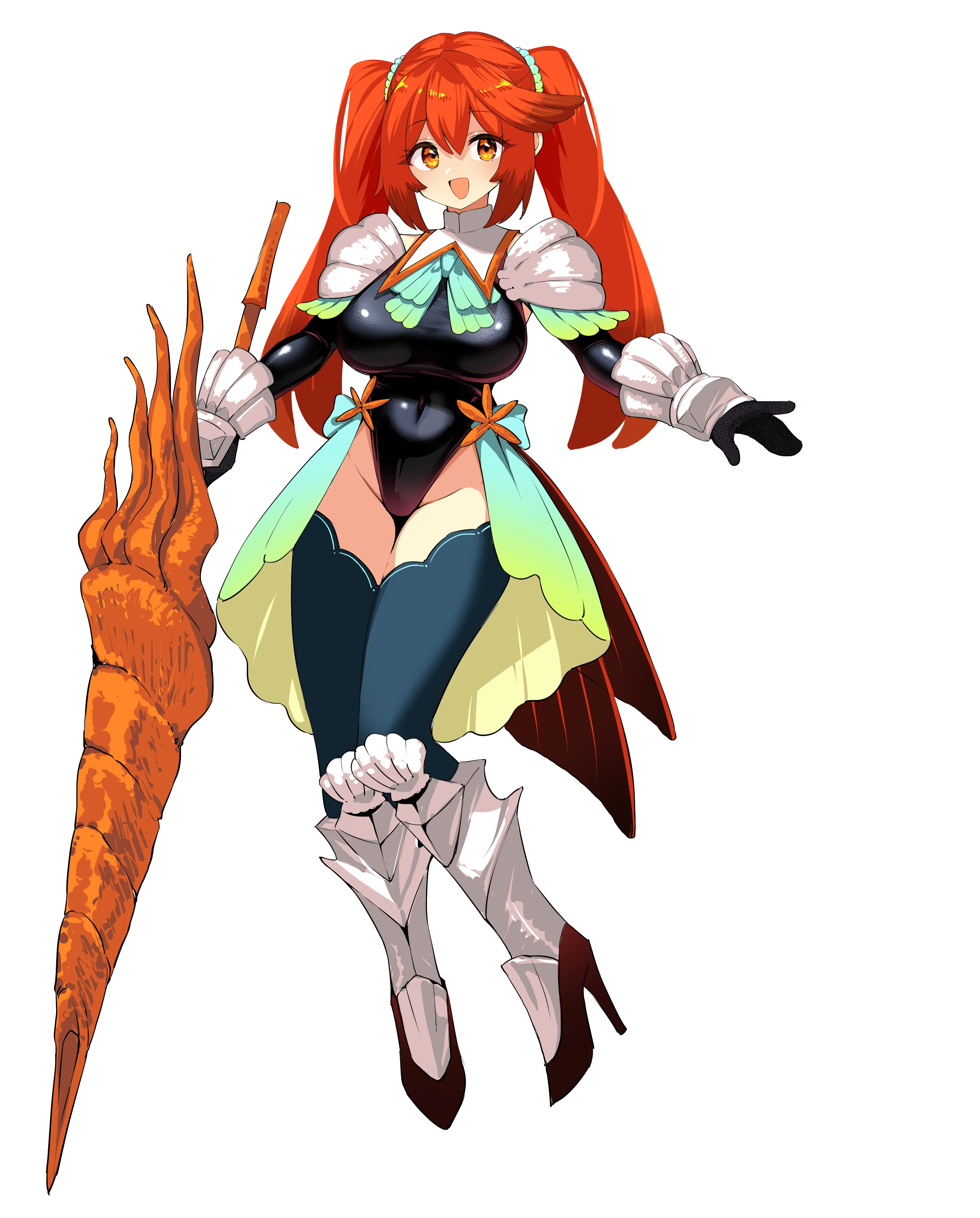 身長167cmほどで人間らしい姿をしているが、薄くて真っ赤な魚の尾びれが生えている。