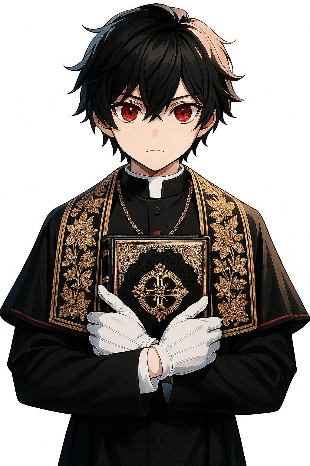 髪の色:黒、瞳の色:赤、肌の色:黄色