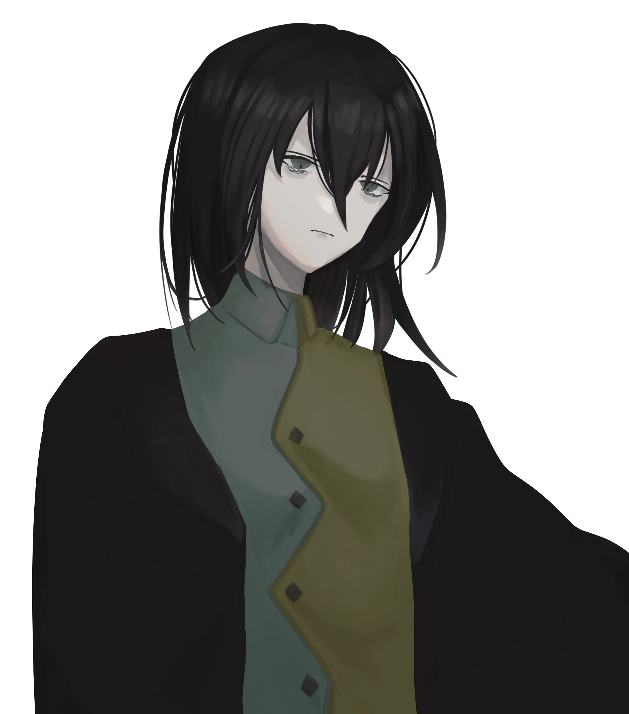 黒髪に緑目。長身と目つきの悪さゆえに威圧感がある。多忙から隈が消えないため、血色のなさにおまけして不健康に見える。