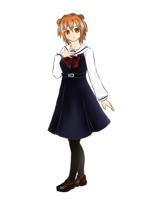 髪は茶色で所謂くらげツインテールにしている。目は暗めの金色。