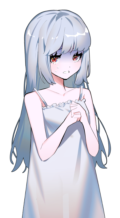 容姿:小柄・青みがかった白髪・赤を中心として青と黄色が混じった瞳・雪のように白い肌