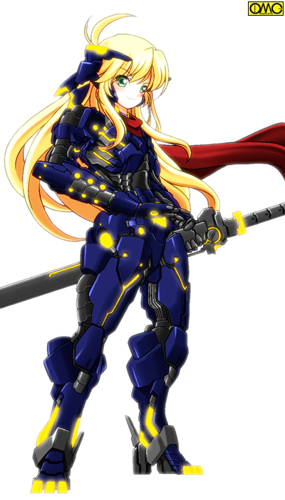 全身義体で、専用剣は胸部に専用の格納リールが仕込んであるため、ビジュアル的には胸元から抜剣する。