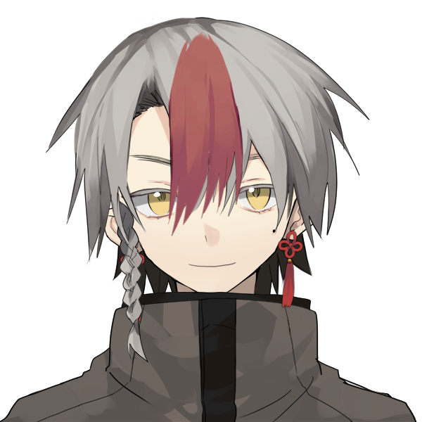 赤、白、黒の三色入り混じった髪色が特徴。表情豊かで、動きもどこか忙しない。