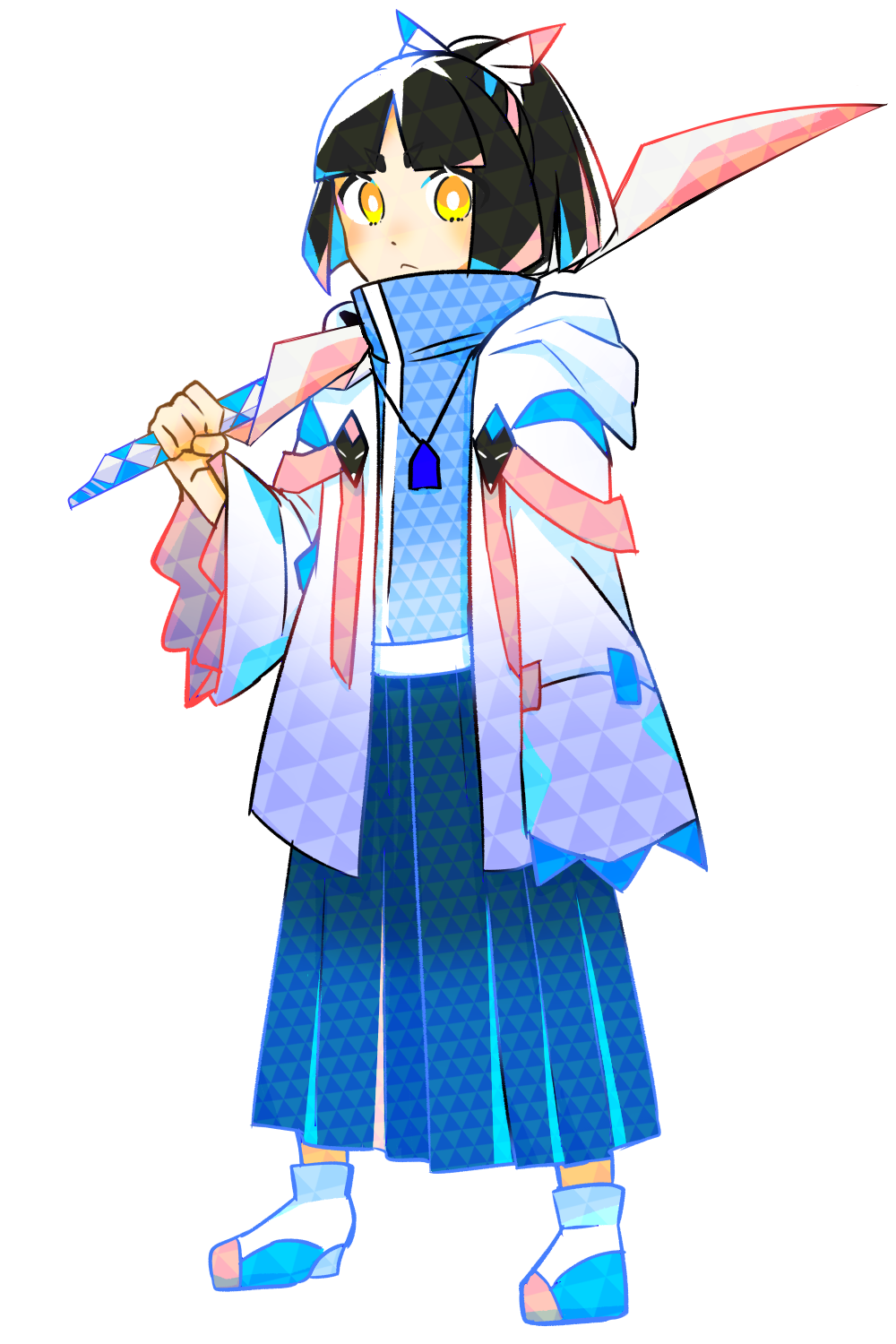 | テクスチャーチェンジで見た目を折り紙でできたような、白い刀になっている。