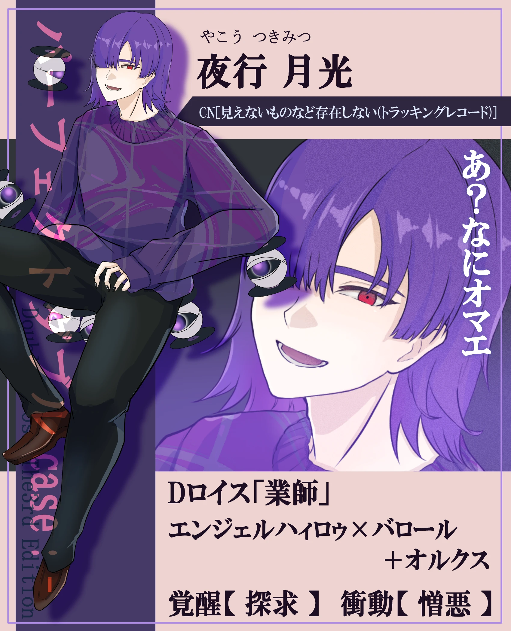 | オーヴァードになった日 | 好奇心 | 今後レネゲイドを怖いものと思ったとして、面白いものみーっけ! って気持ちは両立し得るし変わらないと思うので…… |