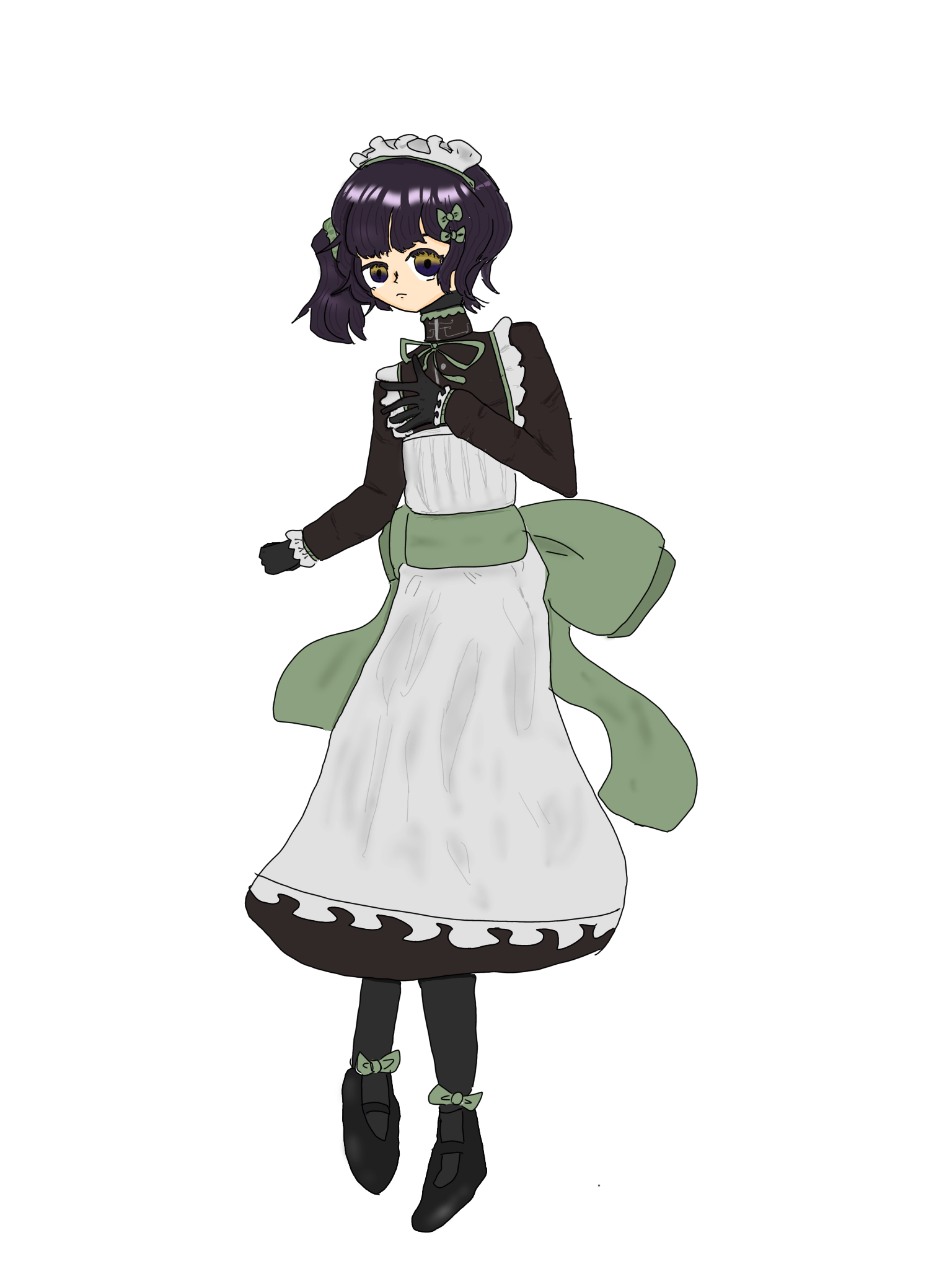 容姿:暗い紫の髪はサイドテールで、綺麗に切りそろえられている。髪の手入れを怠らないため、何時でもつやつや。くりくりとした丸い目は年相応のあどけなさを感じさせるが、そこに光はなく、見ていれば引き込まれそうな闇がある。体格は細身で小柄。体の線が出るような服装は好まない。露出も嫌い。