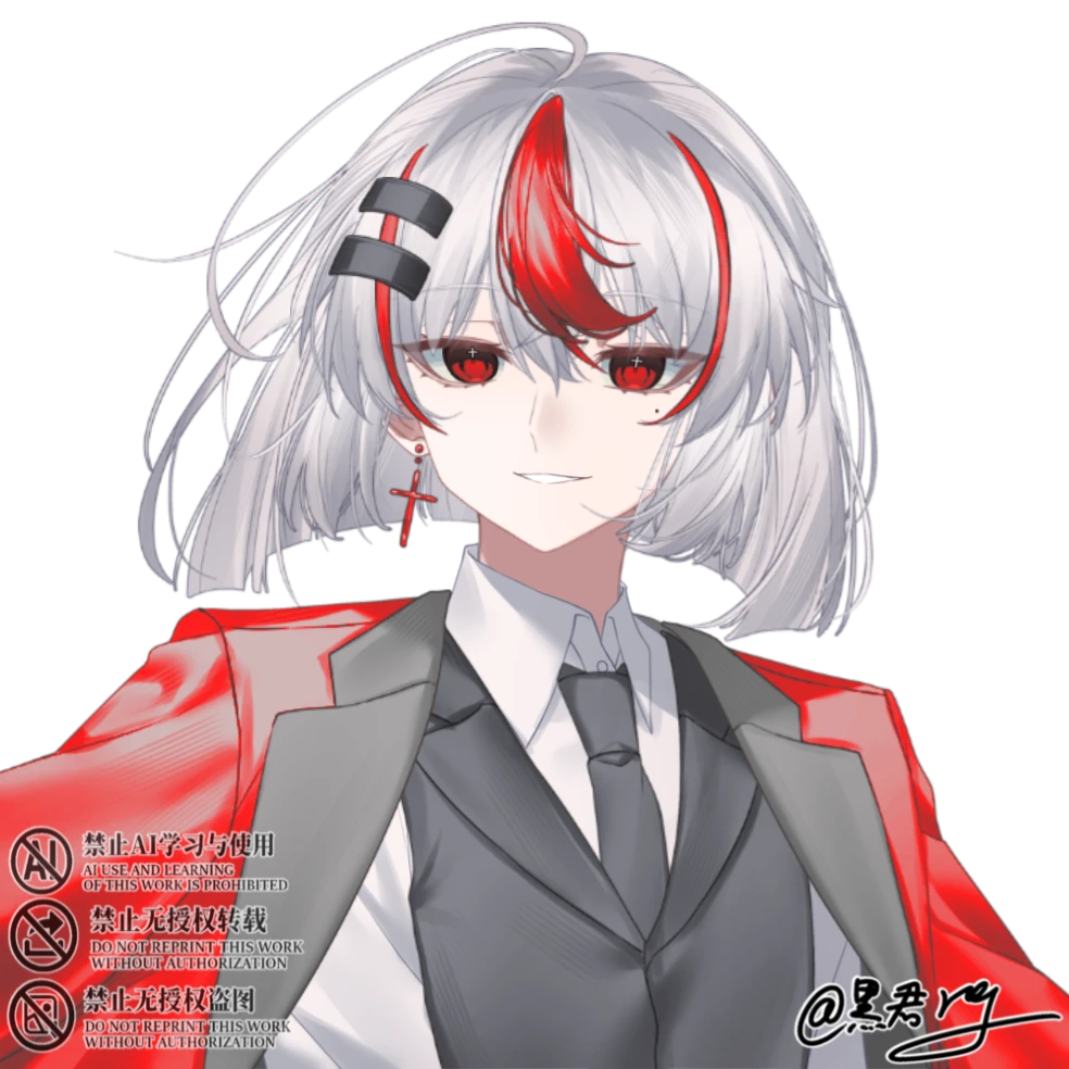小柄で童顔な、ともすれば幼い少年や少女にすら見えるような、中性的な青年。血のような赤に瞳と、同色のメッシュが特徴。