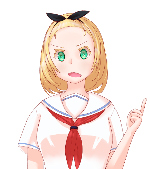 エメラルドグリーンの瞳と黒いリボンのついたカチューシャが映える金髪をした少女。
