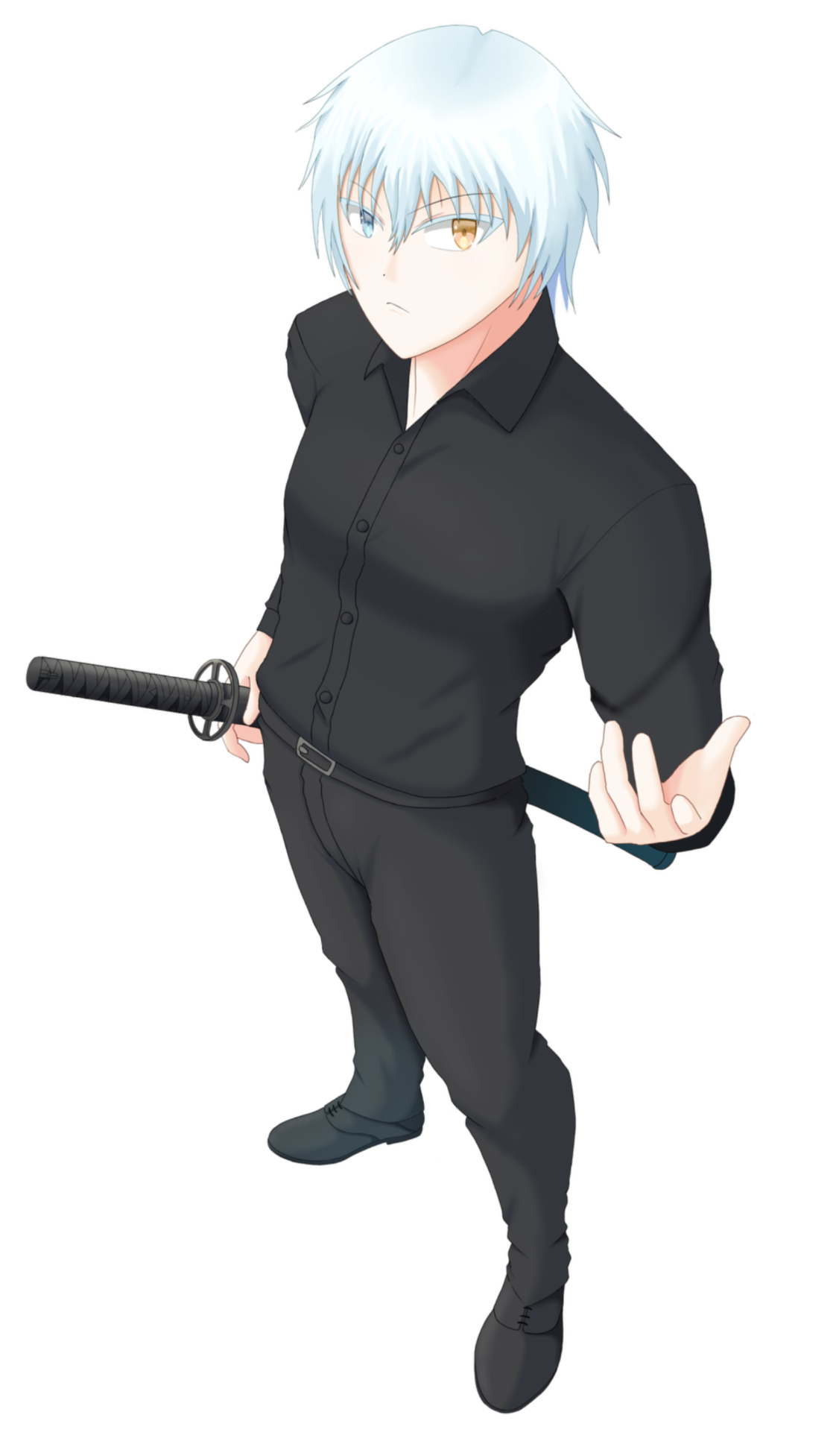 白髪にオッドアイ、黒い服を好む。