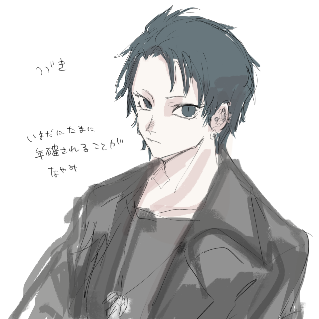 童顔できつい顔・黒目・暗めブルーアッシュの髪