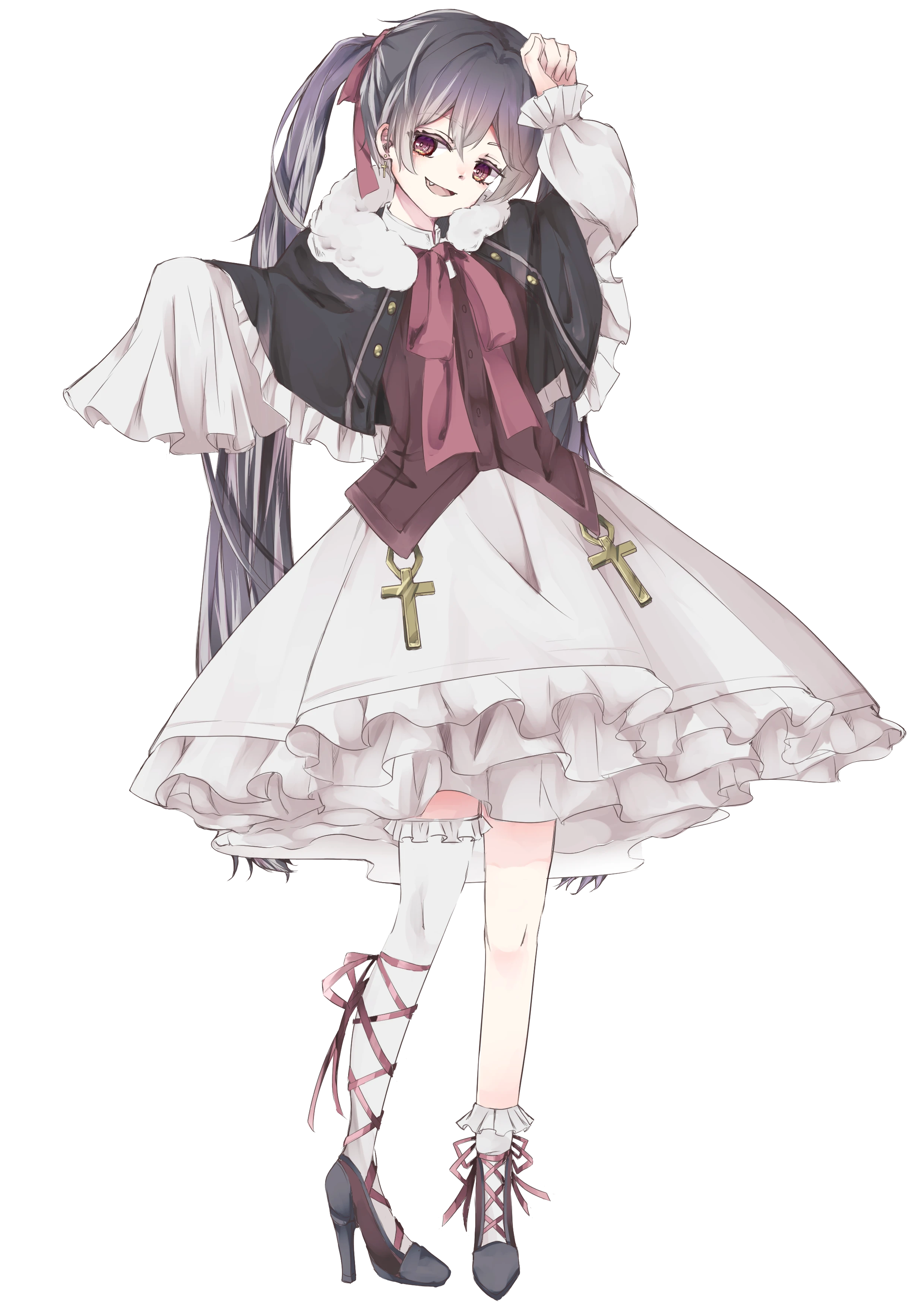 容姿:ロングツインテ、リボンブラウス