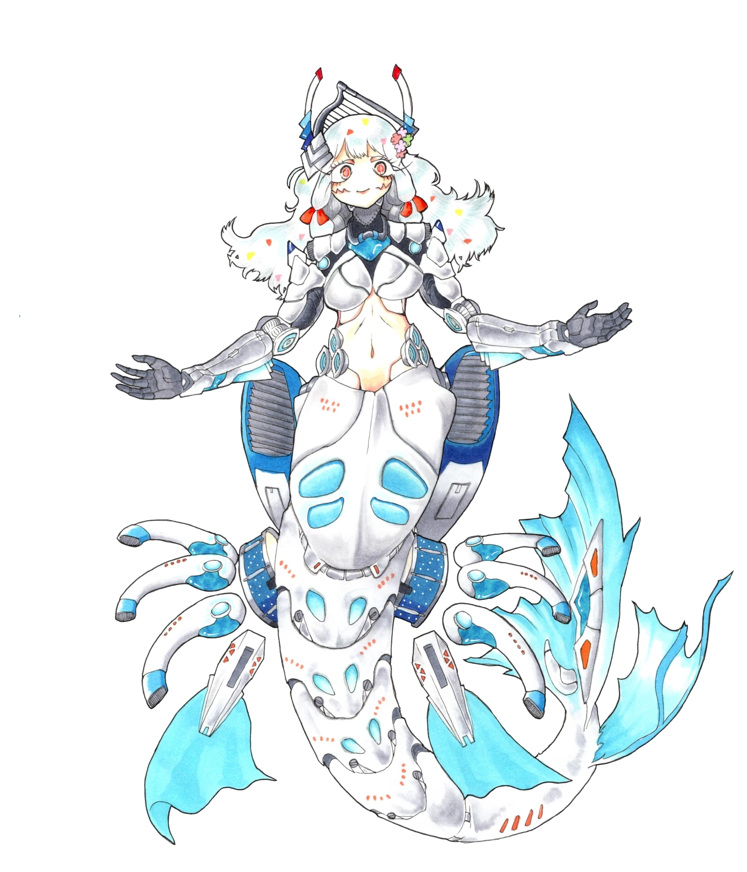 全身を機械に換装した人魚という異形を湛えているが、敵対的な接触を行わない限りは問題なく会話ができる。