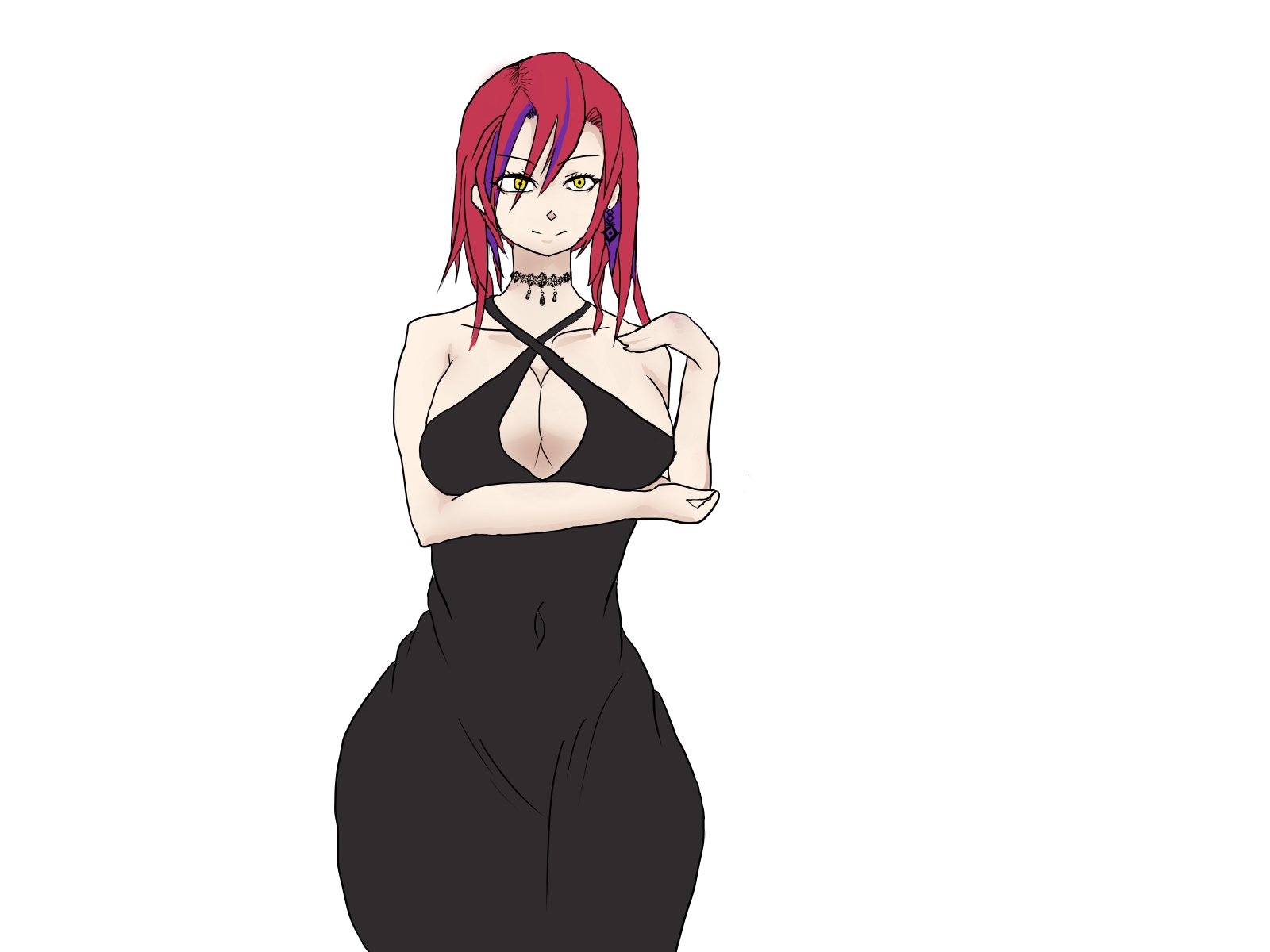 - 赤髪で一部の男性を超える高身長。高貴な家に生まれ大切に育てられた箱入り娘というと華奢な体躯の薄幸美少女というイメージだが妙齢の女性となった彼女は美しさはそのままに少女の可憐さは肉付きがよく豊満な美しい大人の女性に成長した。そのバストは豊満である。