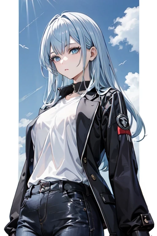 白髪、スカイブルーの瞳