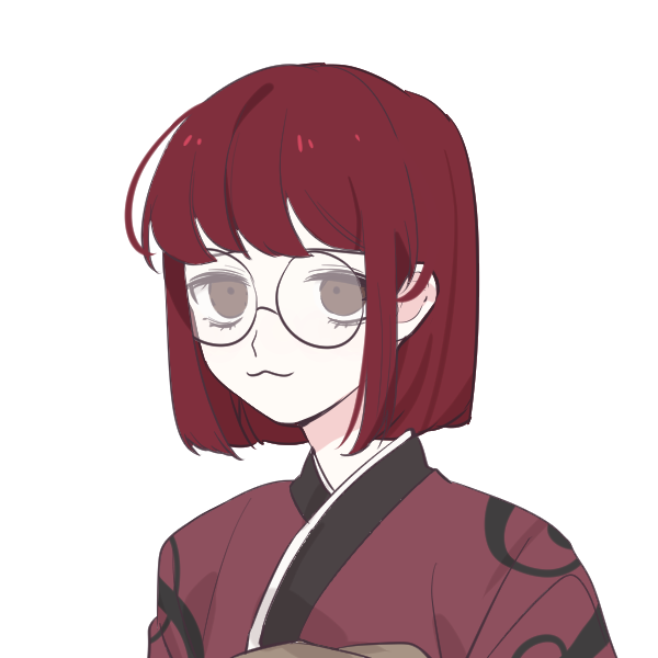 - 緋色の尼削ぎの髪型に丸眼鏡