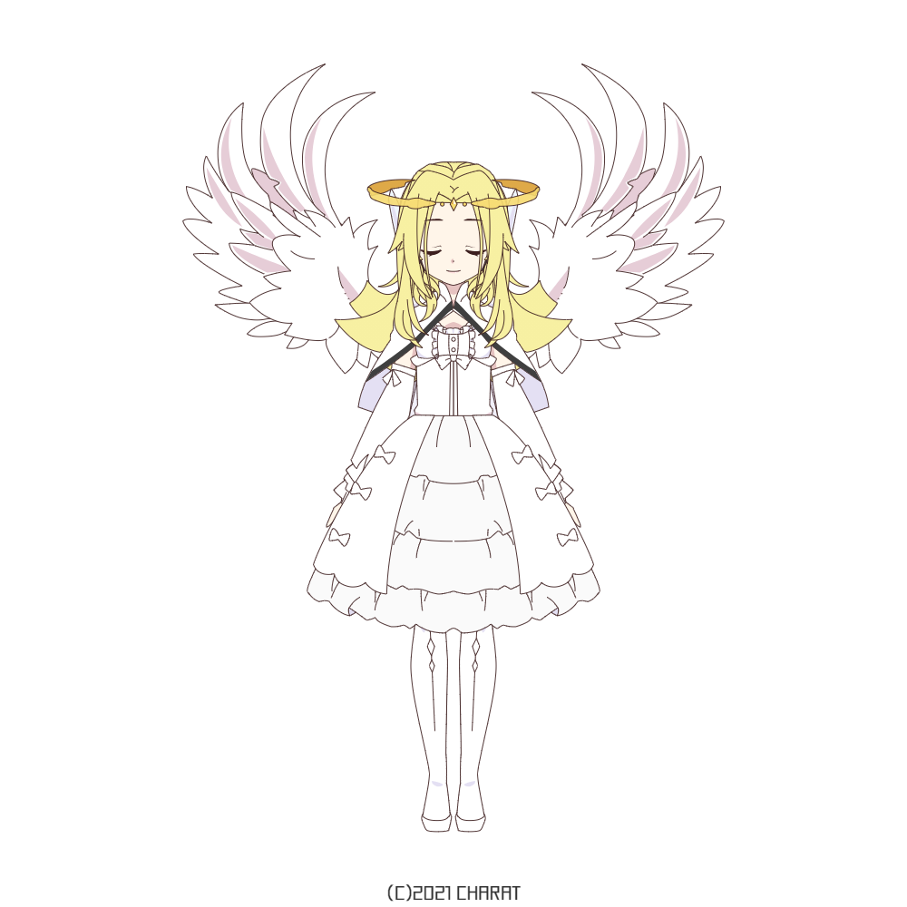 浮世離れした人形のような美少女であり、《オリジン:サイバー》使用時は天使の羽根と輪っかを模したパーツが展開される。