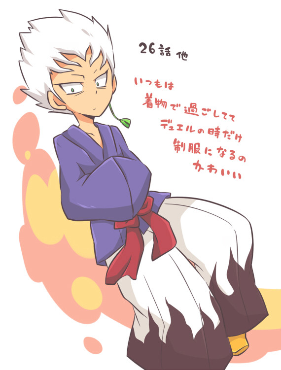 白いオールバックの短髪と着崩した制服(私服は和服。こちらも着崩している)を身につけた青年。