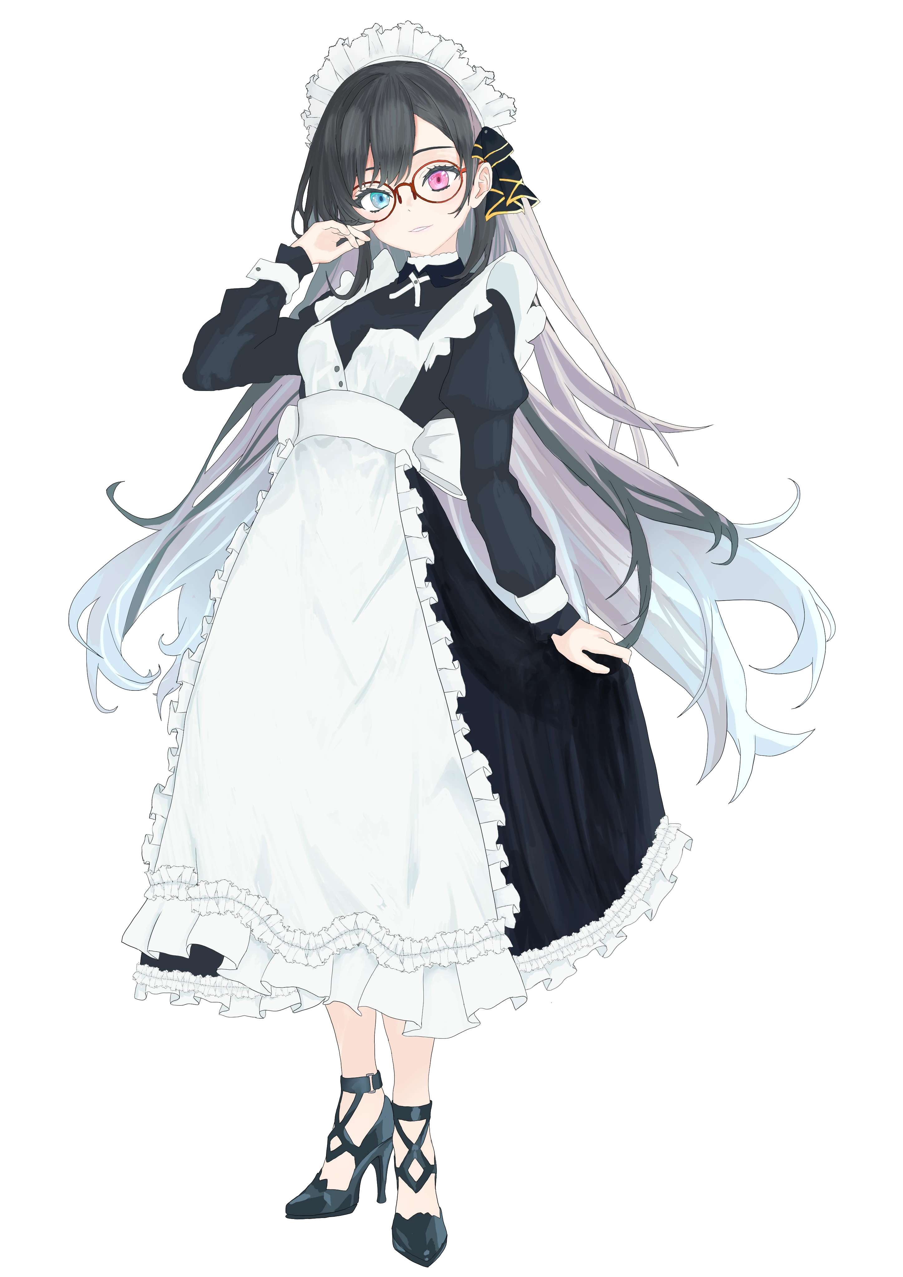 長い黒髪とオッドアイが特徴のメイド少女