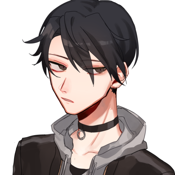黒髪短髪・灰色の瞳。