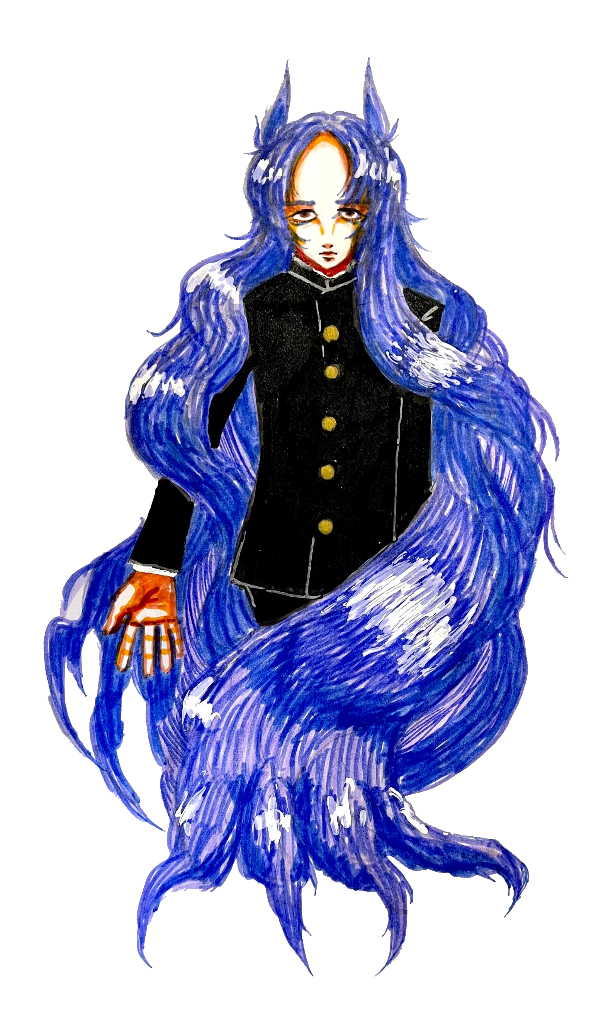 実際には膝近くまである髪を、謎の技術でまとめて結い上げている。