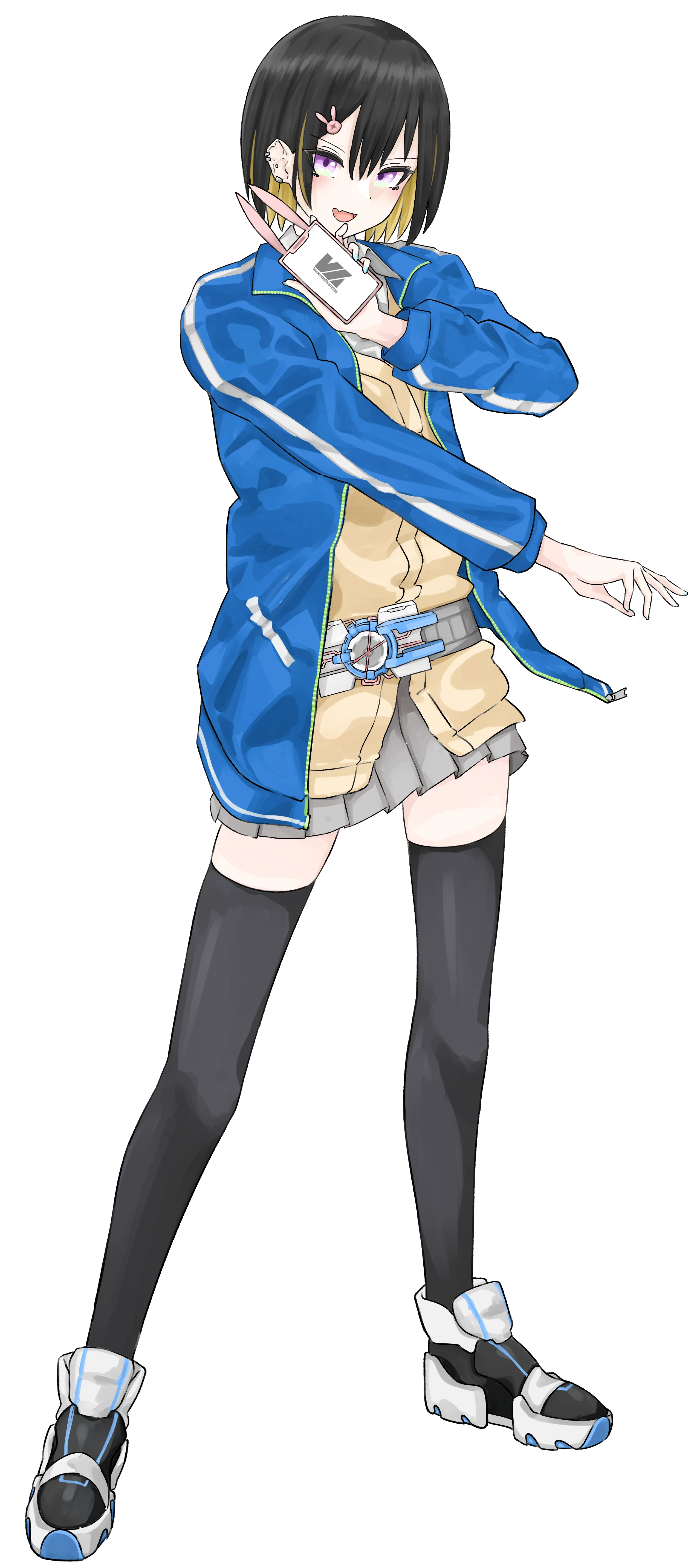 腰に装備したアウスラドライバーに社用スマホをかざすことで認証し、スーツを展開して装甲できる。