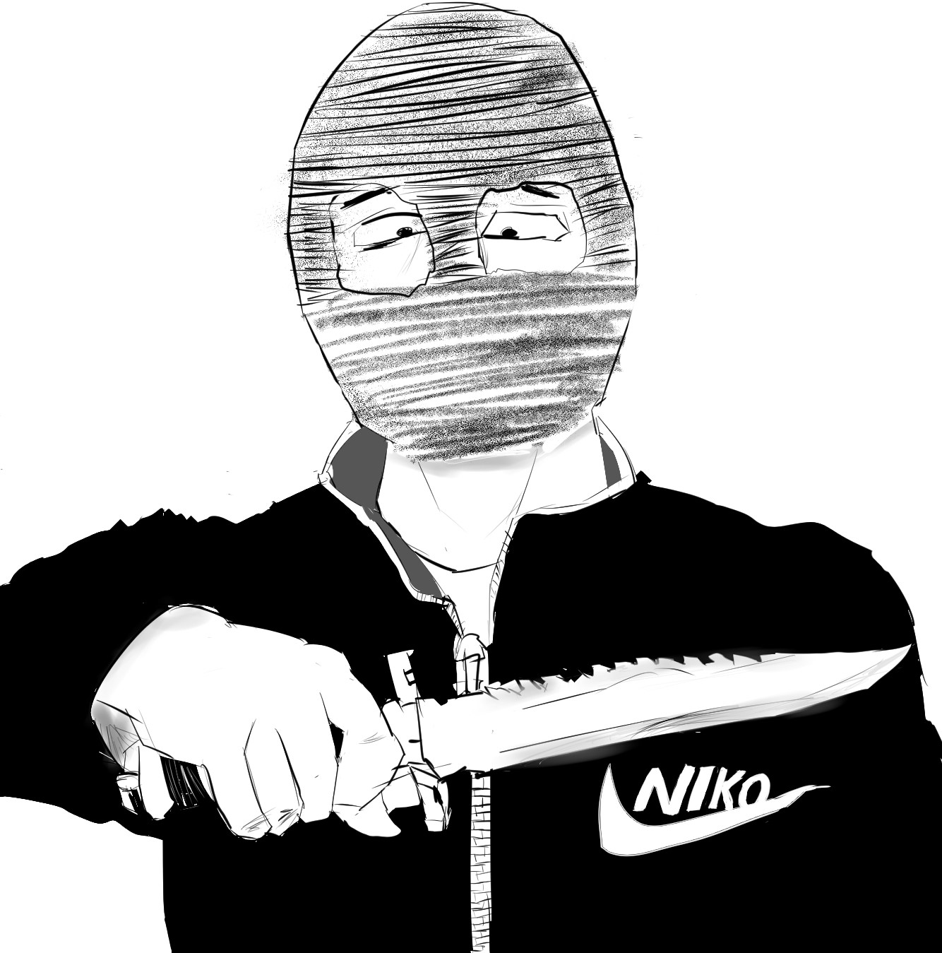 殺しをするときはニット帽(税込220円)を頭がすっぽりと覆うようにかぶり目元に穴をあけた、自家製目出し帽を使って顔を隠している。