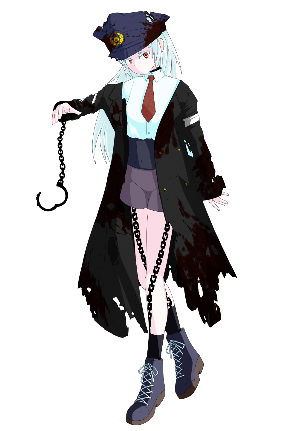 どんな時でも黒い外套を羽織り、ボロボロの警察官制帽をかぶっている。