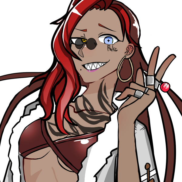 緋色の長髪にオッドアイが特徴。服装は日によってやや異なるが、どれも豪奢で風格ある雰囲気。褐色肌で良く笑う。髑髏を模った指輪をしており、これを武器としている。月が象られたタトゥーやアクセサリーをよく着けている。