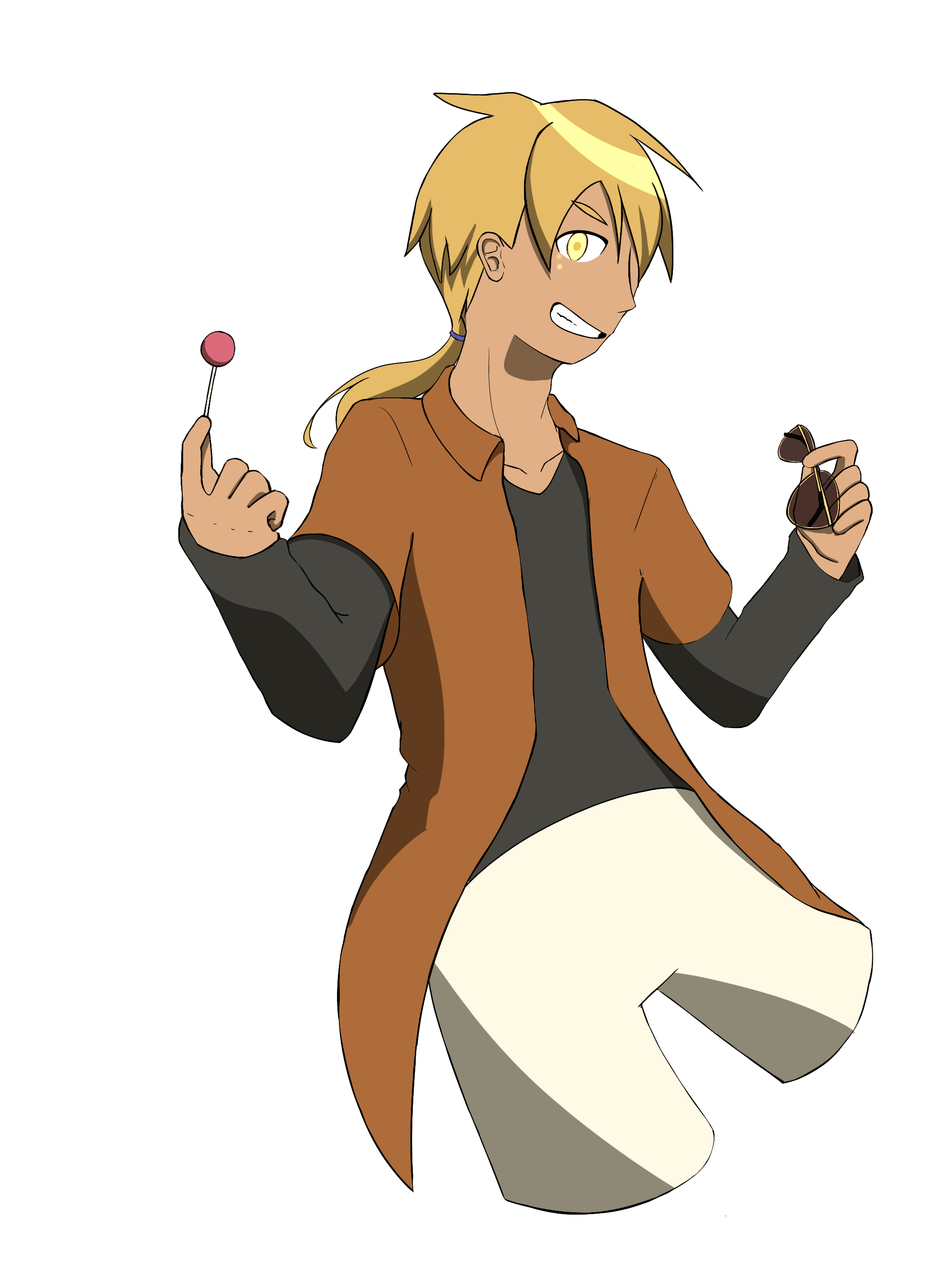 目は元々黒だったが因子の影響で金色に染まりうっすら発光するようになった。視力が上がった以外に本人の視界には殆ど影響は無いが、気の緩みや感情の昂ぶりに伴って光の粒子が散って悪目立ちするのでサングラスを常備している。