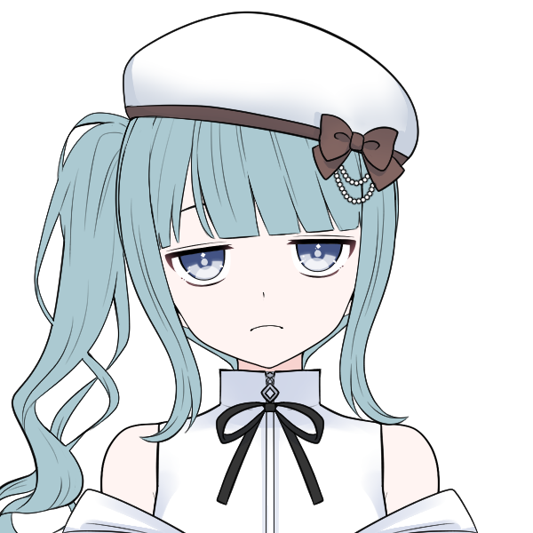 - ホリゾンブルーのツインテールにベレー帽、ピジョンブルーの目(伏し目がち)
