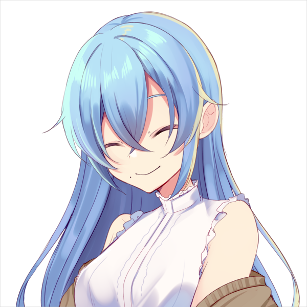 青い長髪で口元に艶ぼくろがあり常に笑顔が絶えない表情をしている。