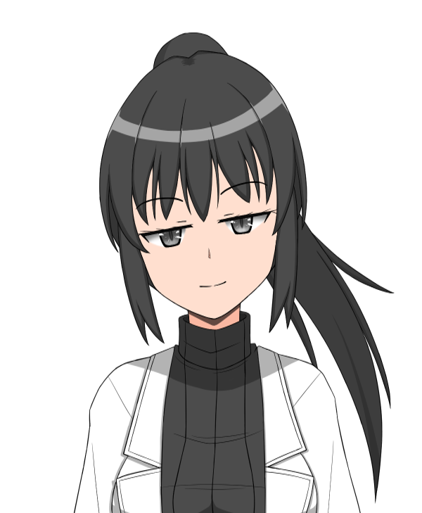 髪型はポニテ ちょっと目が荒んでいる