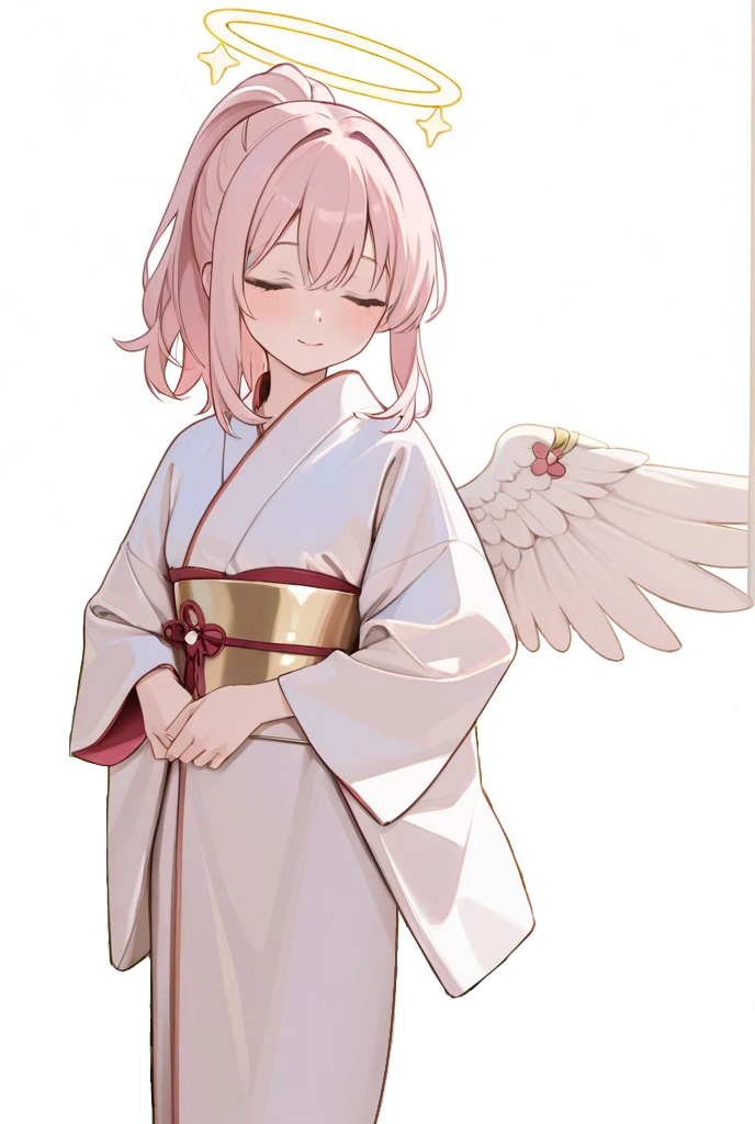 桜色の髪を後ろで一つ結びにしており、頭の上にはそこそこの大きさのヘイローがある。
