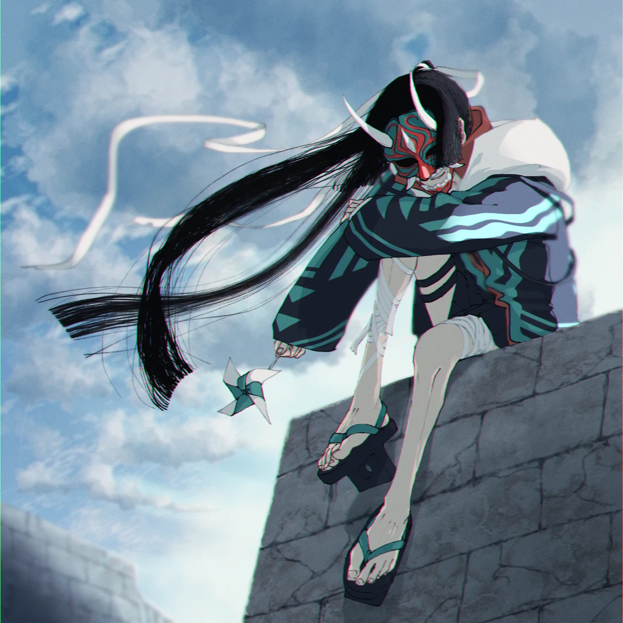 何でも屋・傭兵のような真似をして日銭を稼いで暮らす子ども。鬼の面を着け、風車を持ち歩いているのが特徴。