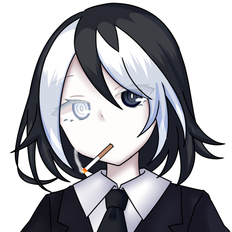 不健康な白い肌にモノトーンの髪と、白と黒で構成された見た目をしている。