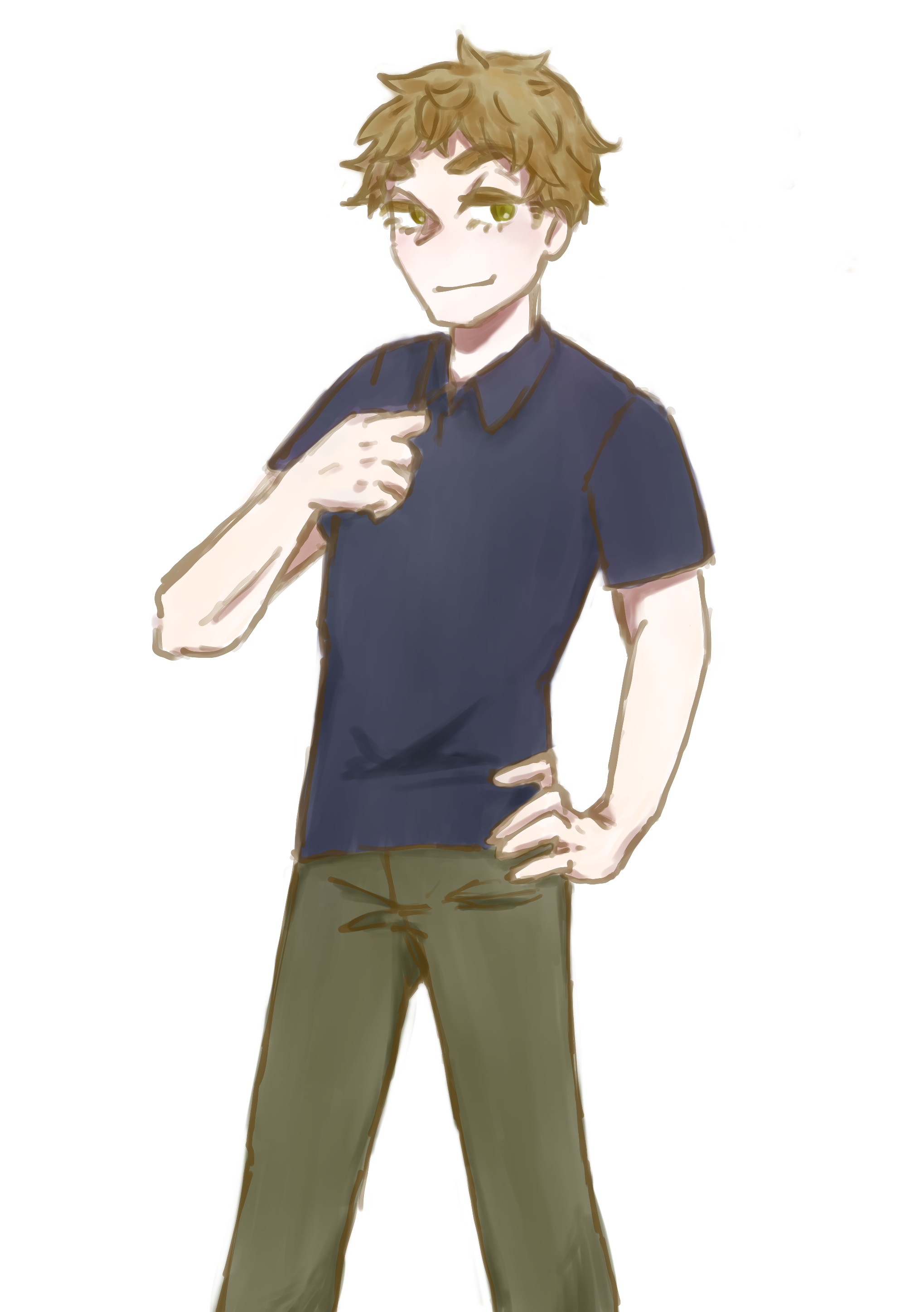 - 明るい金茶、ちょっとハネ気味のショートヘア