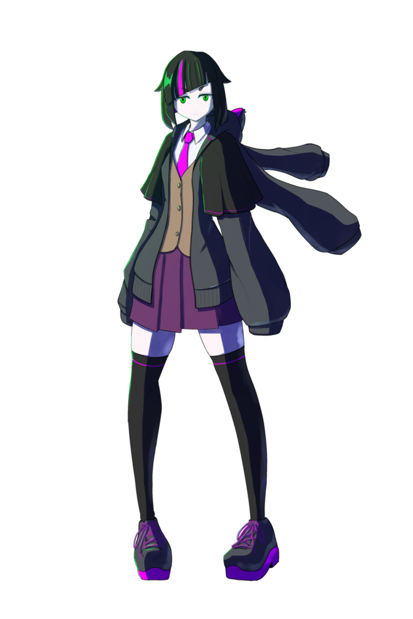 学生服の上にオーバーサイズのパーカーを羽織っている。背中側に2本の袖があり、能力発動時はそちらを通した触腕と両手で計4本のチェーンソードを操る。