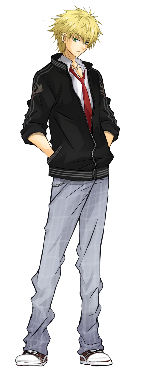 金髪。身長・体格は平均的。