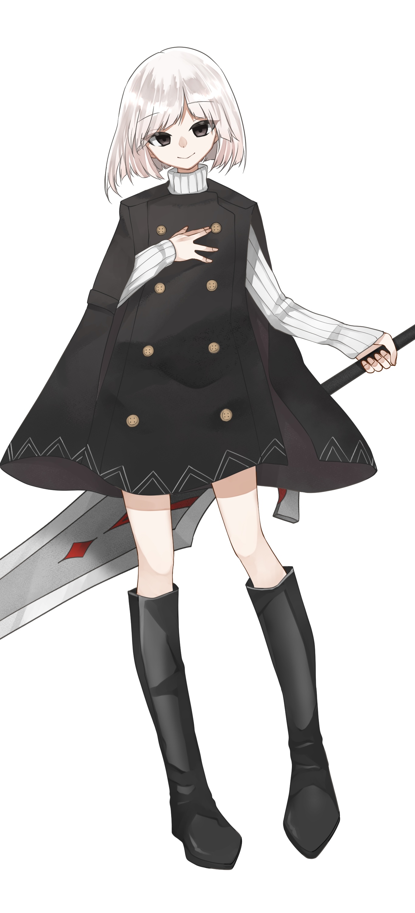 切り揃えた白髪と黒いケープコートの少女
