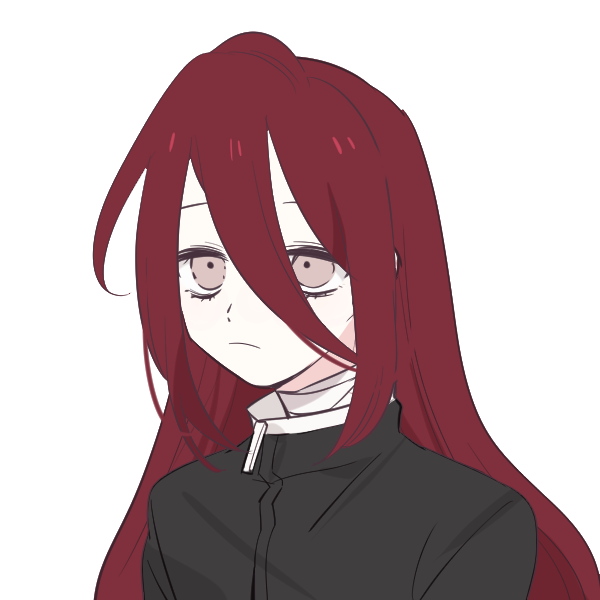 身長が低く、紅色の長髪を腰まで伸ばしている。顔も隠れがちなので、不健康な印象を受ける。
