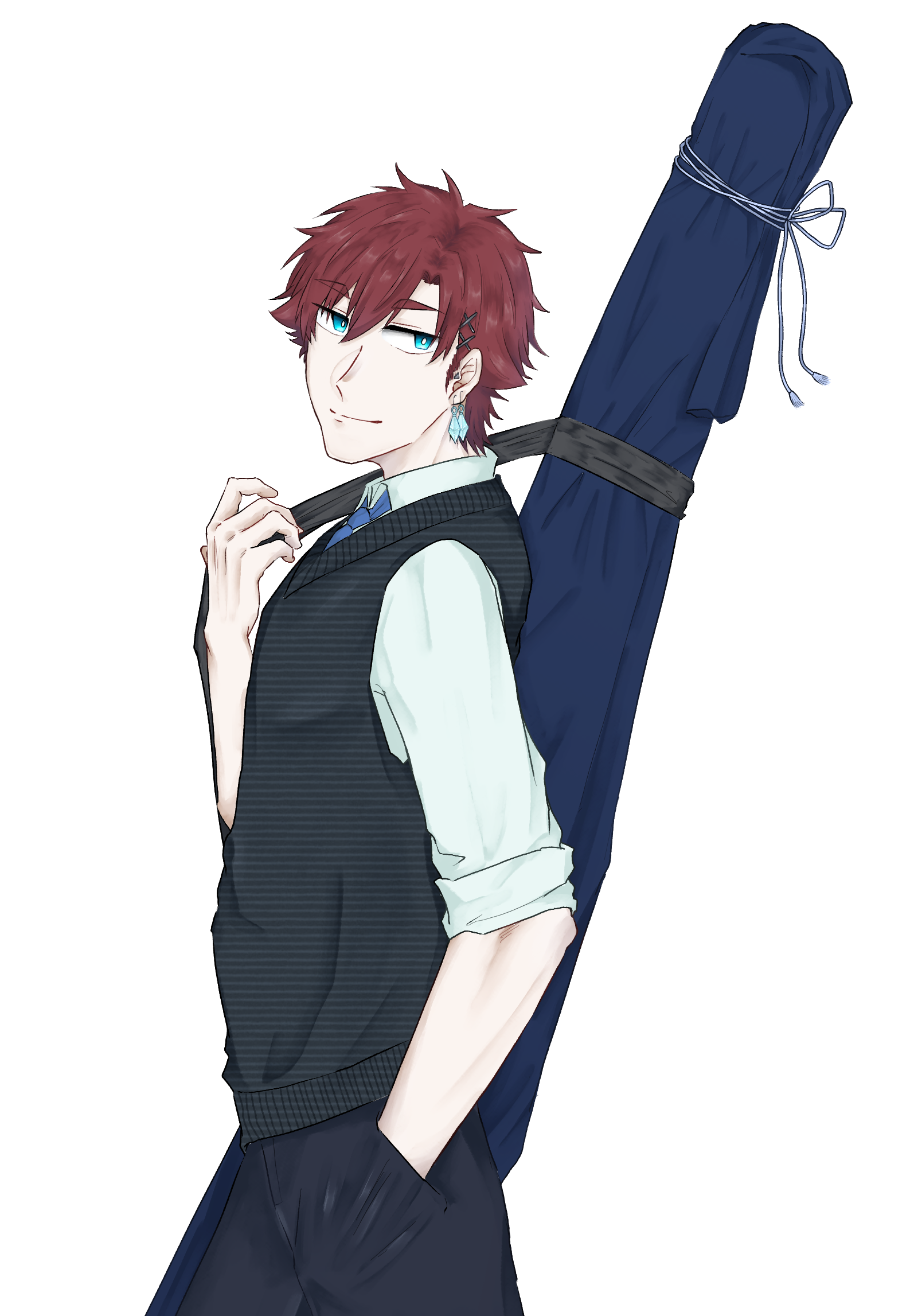薄い水色のガラスピアスを着けている。シャラシャラ鳴るのがお気に入り。