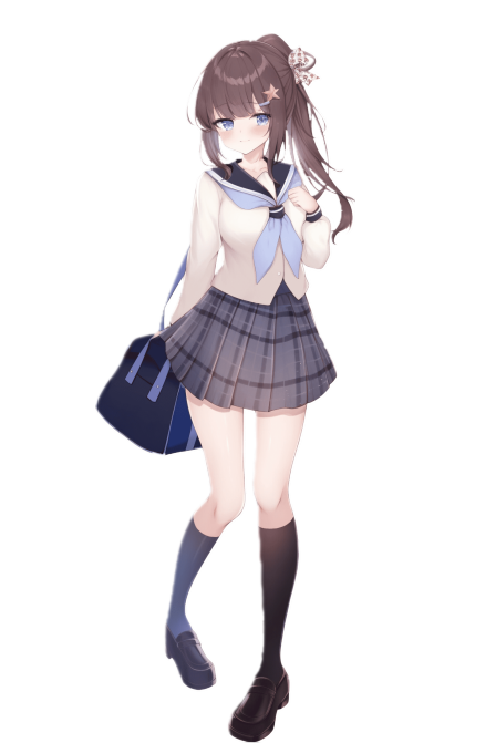長髪;茶色 顔にかからないようにリボンで止めている。