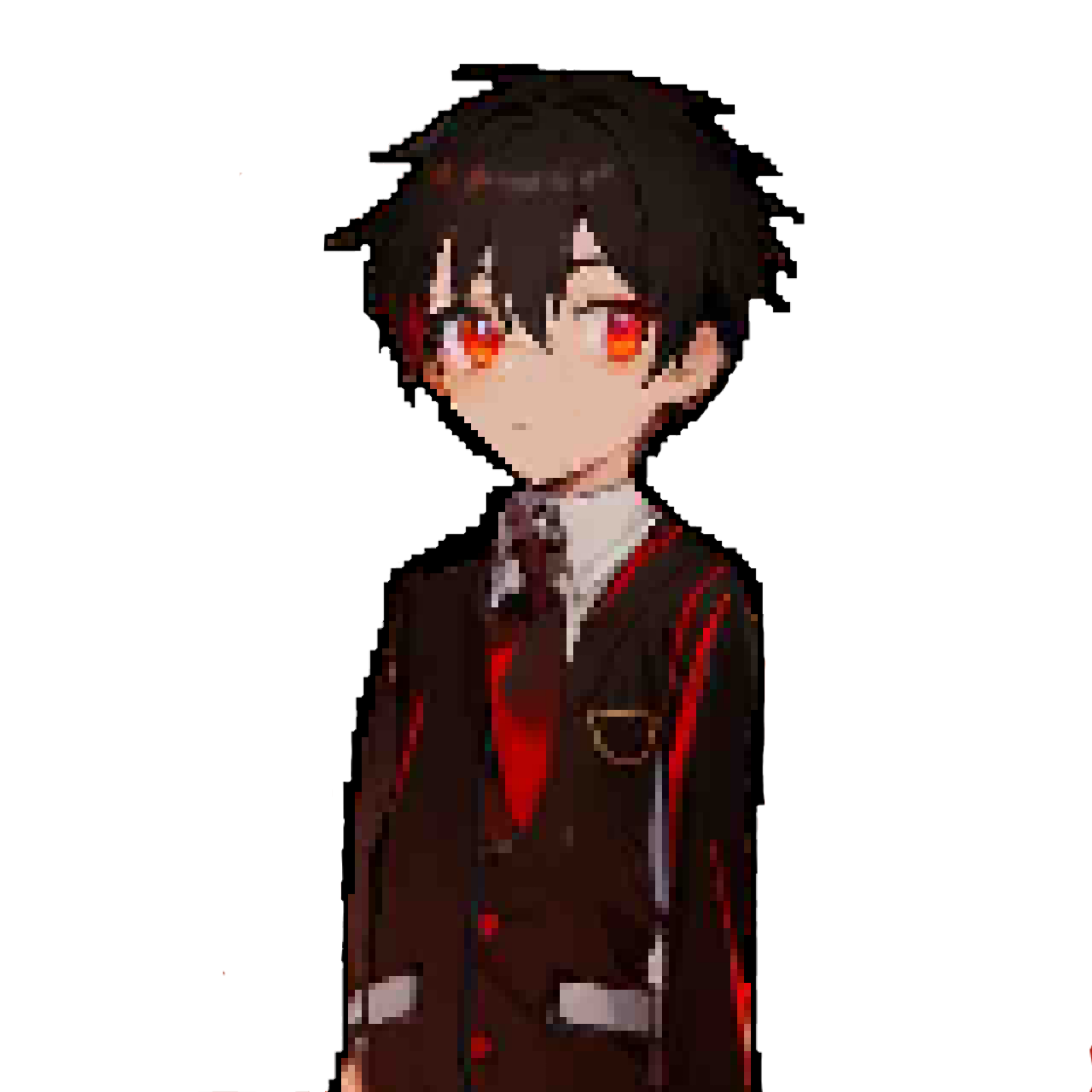 赤い目、黒髪(たまに赤に染める,黒に戻しきれておらず少し赤いとこが見える)