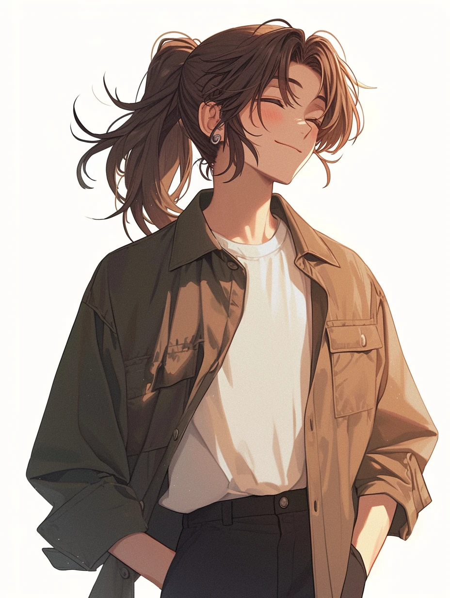 色白で糸目、男性離れした綺麗な顔立ちをした長い茶髪の若者。